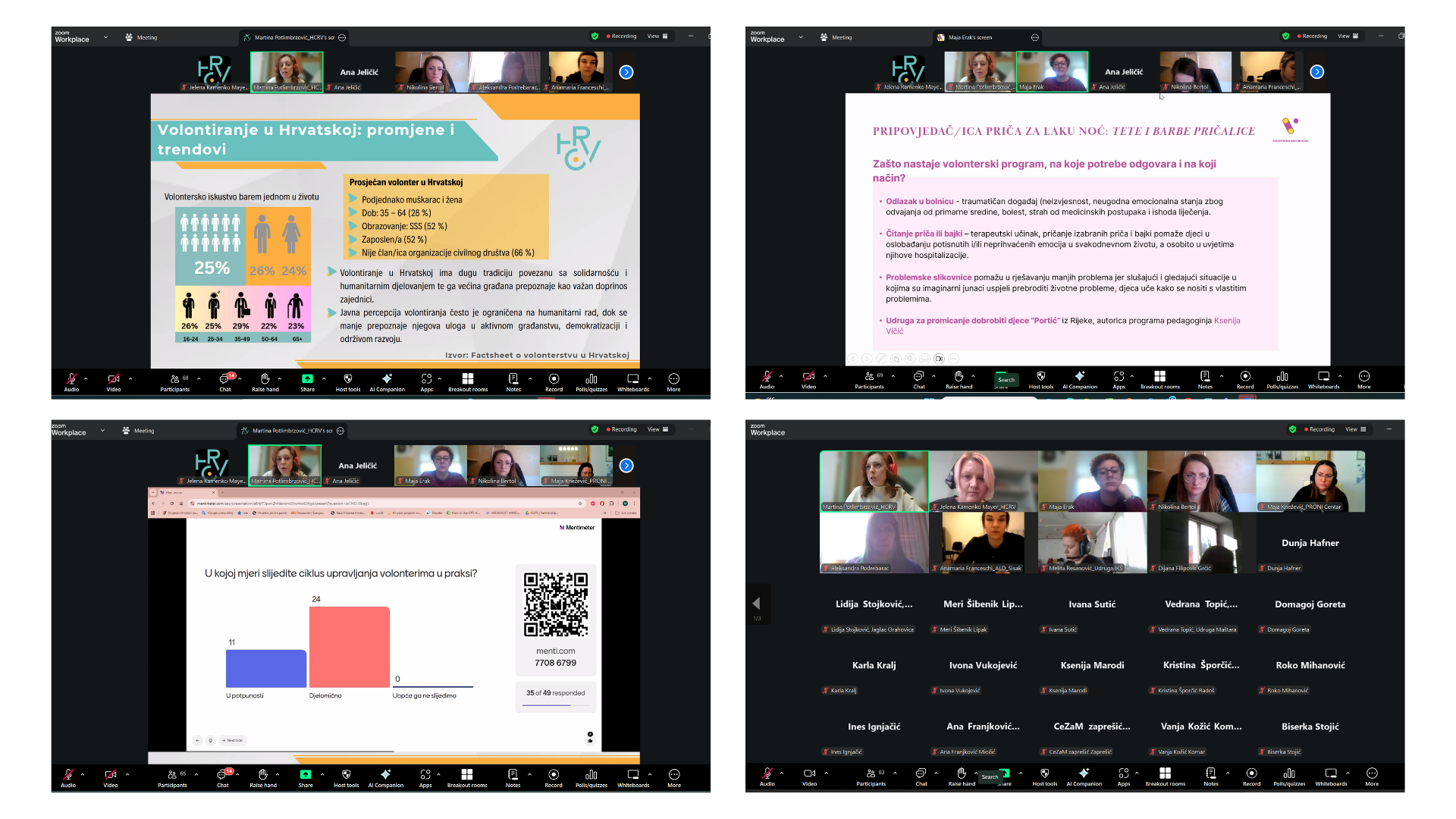 Projekt Hrvatska volontira – pozitivna struja volonterstva doprinosi daljnoj afirmaciji i izgradnji infrastrukture za razvoj volonterstva kroz razvoj alata za standardizaciju i uspostavljanje kvalitete volonterskih programa i rada organizatora volontiranja, kao i ustanova socijalne i zdravstvene skrbi te uspostavljanje Standarda kvalitete rada volonterskih centara. Projekt ima za cilj unaprijediti kvalitetu usluga koje volonteri pružaju korisnicima, uključujući izradu smjernica za kvalitetu i standarde volonterskih programa. U sklopu projekta bit će izrađena jedinstvena nacionalna informatička platforma/interaktivna baza organizatora volontiranja i volontera s objedinjenim podacima o volonterskim pozicijama i volonterima na području RH. Na taj način organizatori volontiranja imat će pregled različitih primjera dobre prakse volonterskih pozicija i volonterskih programa, a građani će dobiti informacije koje će im omogućiti mobilnost u pogledu volontiranja. Kroz edukacijske aktivnosti te izradu kurikuluma za provedbu edukacije iz područja menadžmenta volontera, jača trenerske kapacitete za prijenos znanja i vještina o menadžmentu volontera kroz promociju kulture volontiranja. Uključivanjem građana u volonterske akcije podiže se njihova informiranost o postojećim volonterskim pozicijama, što pridonosi adekvatnijem vrednovanju volonterstva.