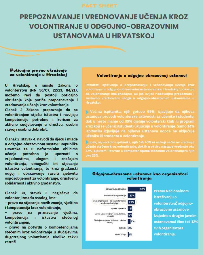 Fact sheet: Prepoznavanje i vrednovanje učenja kroz volontiranje u odgojno-obrazovnim ustanovama u Hrvatskoj