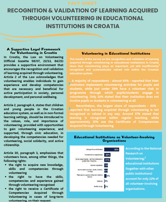 Fact sheet: Recognition & Validation of Learning Acquired Through Volunteering in Educational Institutions in Croatia